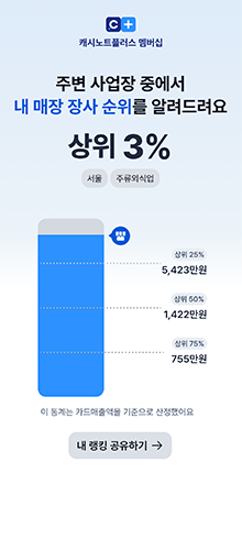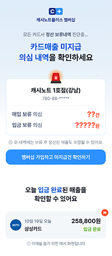 월 16,500원 / VAT 포함캐시노트플러스는 멤버십 구독 서비스로, 사장님의 성공을 위한 체계적인 분석과 매장 운영에 도움이 되는 각종 혜택을 제공하고 있습니다