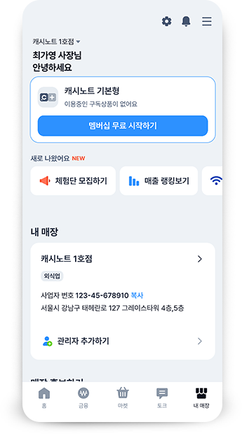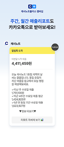 더 나은 매장 관리를 위해 ‘캐시노트' 앱을 설치해 주세요.